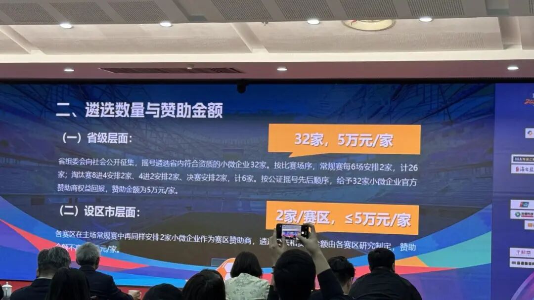 所以在2026赛季,他们特意开通了小微企业的专属赞助方案,每家企业5万元即可获得赞助资格,32个席位将通过公开报名、资质审核与公证摇号方式产生,赞助企业将享受与其他官方赞助商同等权益。目前,组委会已开通线上报名通道。